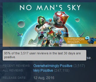 Нравится мне кейс No Man’s Sky. Отличный пример всем разработчикам на тему того, как можно исправить свои собственные ошибки и то, что сообщество это оценит.