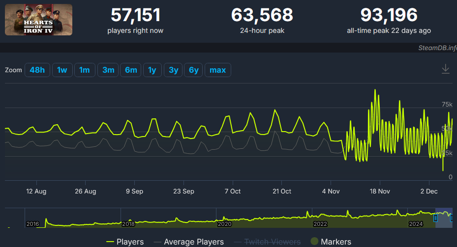 С выходом DLC для Hearts Of Iron IV онлайн в Стиме пробил исторический максимум — 93,196 игроков
