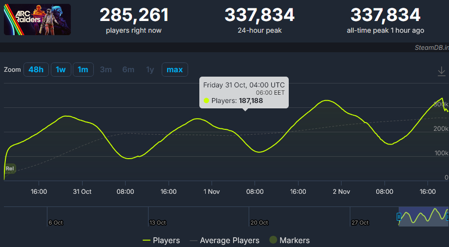 Онлайн ARC Raiders в Steam превысил 300к человек